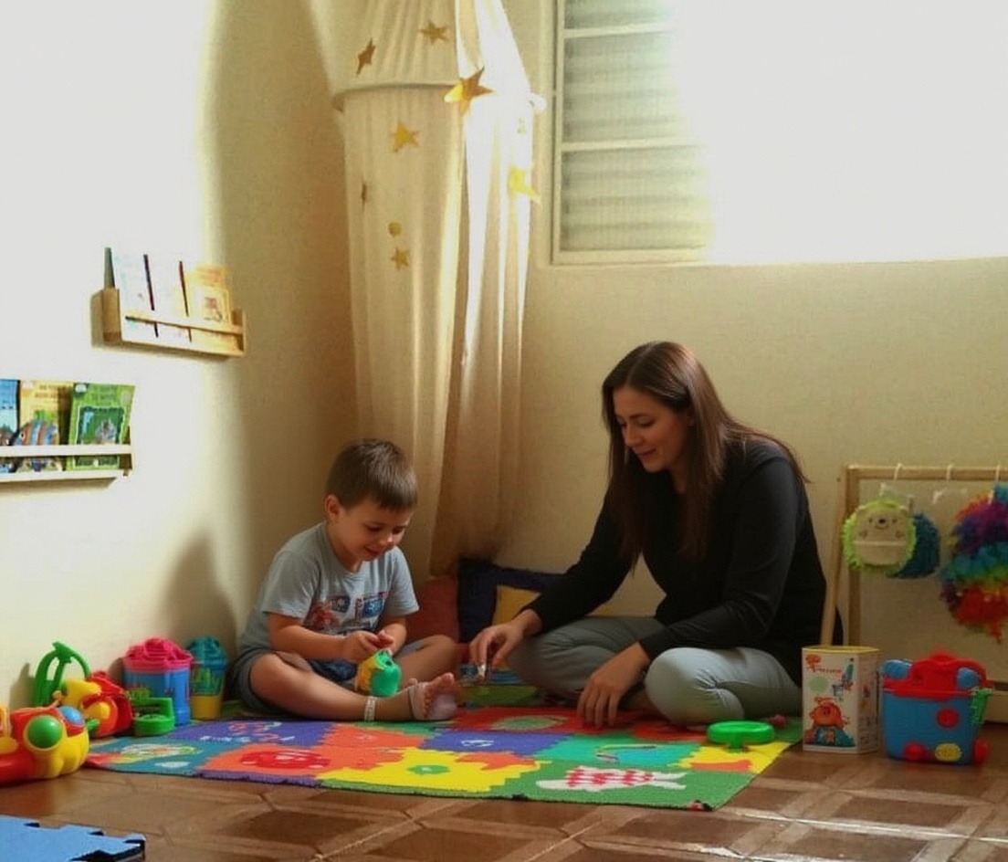 Brincadeiras estruturadas e metas claras para comunicação, socialização e autonomia.
